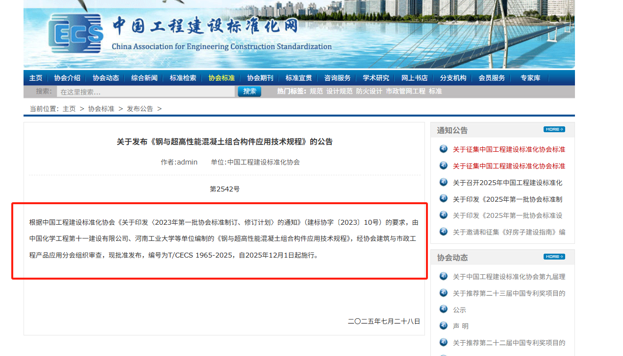 宏日泰耐克參編的《鋼與超高性能混凝土組合構件應用技術規程》正式發布