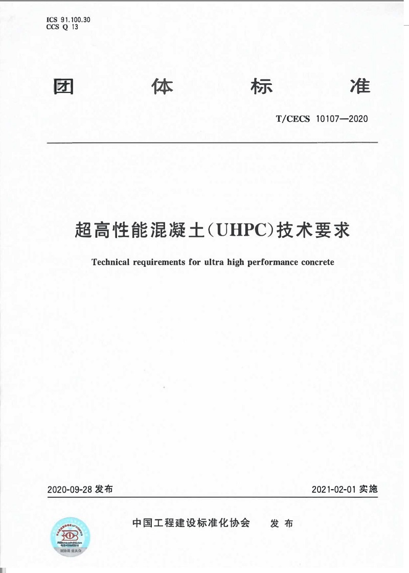 由我公司參編的《超高性能混凝土(UHPC)技術要求》(CECS)標準正式頒布