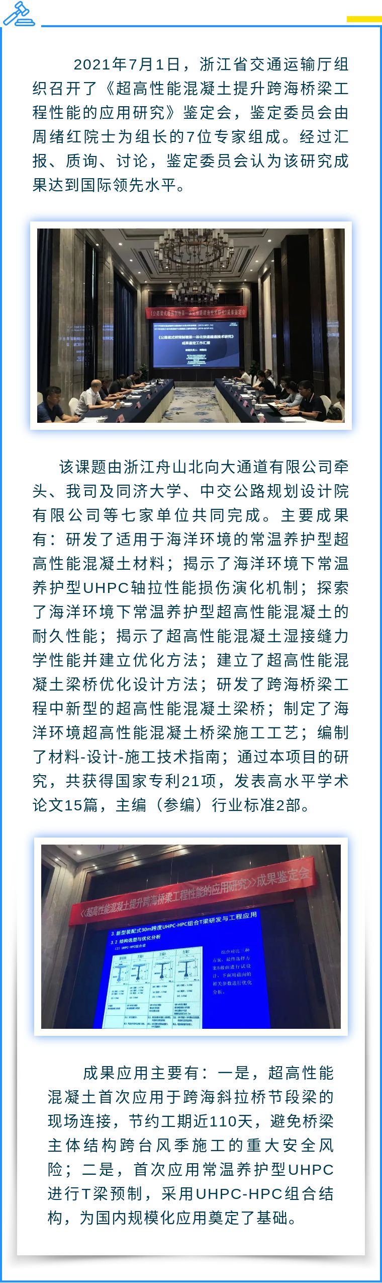 我司參與的《超高性能混凝土提升跨海橋梁工程性能的應(yīng)用研究》成果達(dá)到國(guó)際領(lǐng)先水平