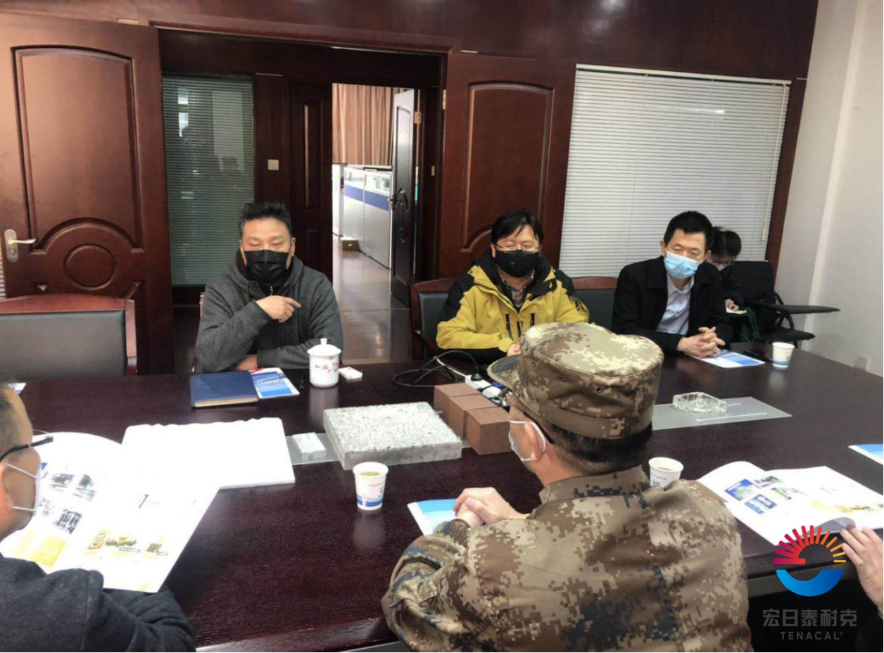 隨后,丁總向各位領導介紹了公司的基本情況、UHPC產品的特性和應用領域以及公司重點工程案例。他通過實驗視頻展示了UHPC產品在軍工防爆方面的優異品質,得到了首長的認可和關注。沙司令員和何區長都表示對UHPC的發展前景十分看好,并對中興大橋、機場路延伸段等項目情況進行溝通了解。